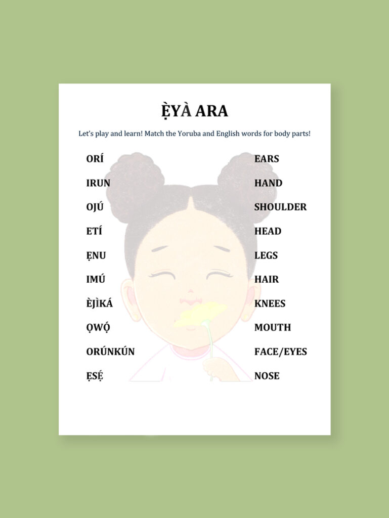 Ẹ̀YÀ ARA: Test your skills! Download and match the Yoruba words for body parts (ẹ̀yà ara) with their English name.