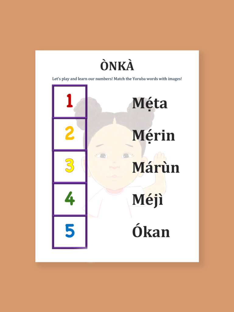 ÒNKÀ: Let’s play and learn our numbers! Match the Yoruba words with images!
